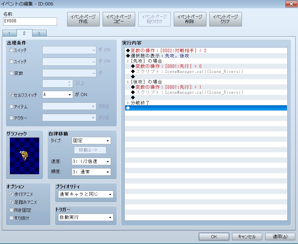 マップ上のイベントコマンドでSceneManager.call(Scene_Riversi)を実行するとリバーシゲームが始まります。